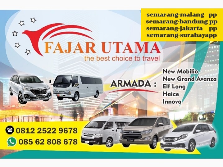 Kami hadir dengan sebuah usaha transportasi yang bernama FAJAR UTAMA tour&travel dimana pada khususnya transportasi darat seperti jasa travel,citytour,rentcar,pariwisata dan paket kilat ke semua penjuru kota sesuai dengan tujuan anda masing masing.area kami meliputi :